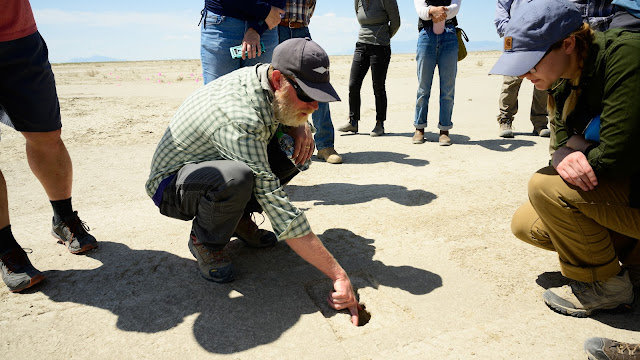 With the 100-plus degrees on the dry, stark landscape of the UTTR in July today, it is difficult to visualize the above scenario, but Duke said “there have been no wetland conditions to produce the trackways,” or footprint trails, in this remote area of the Great Salt Lake desert since at least approximately 10,000 years ago.